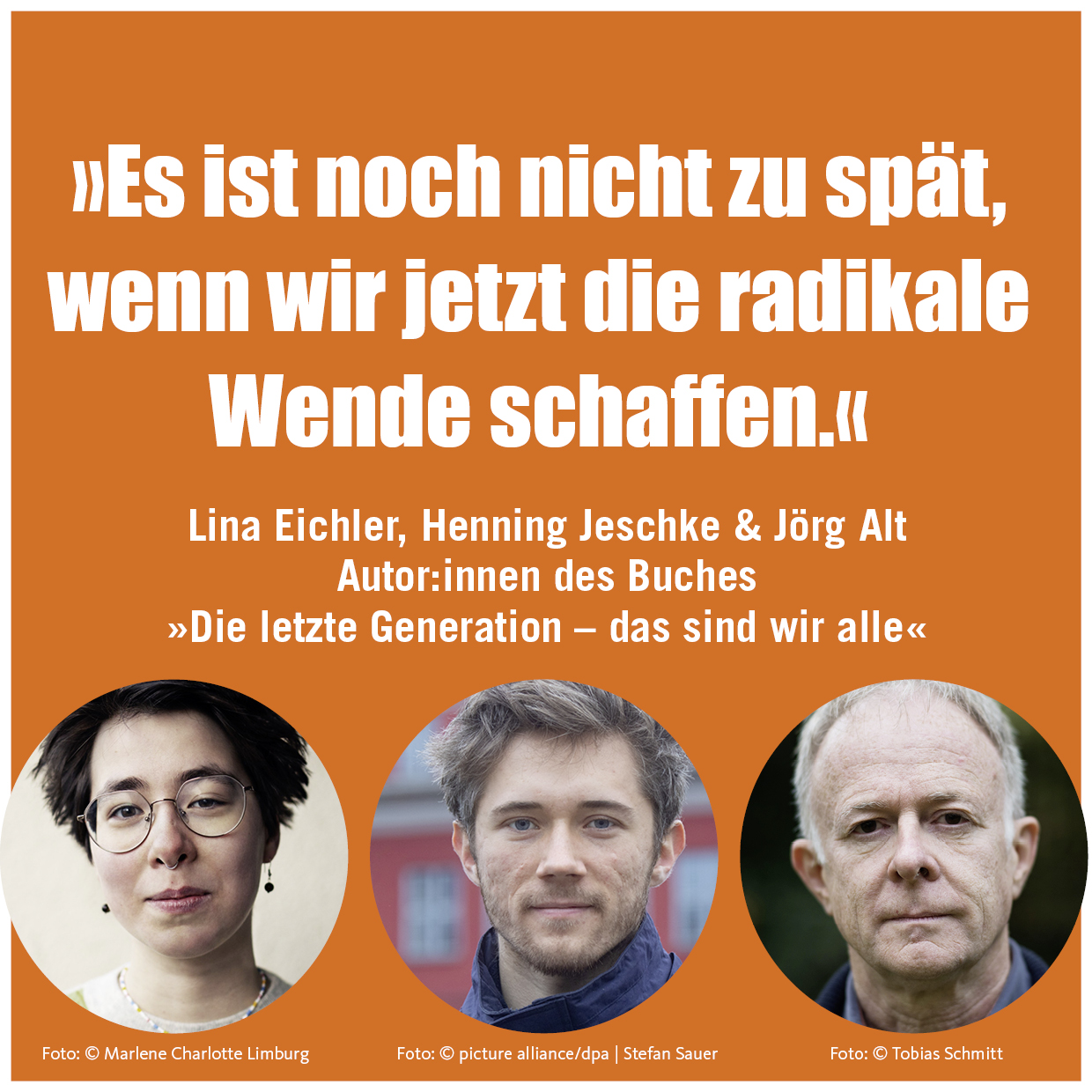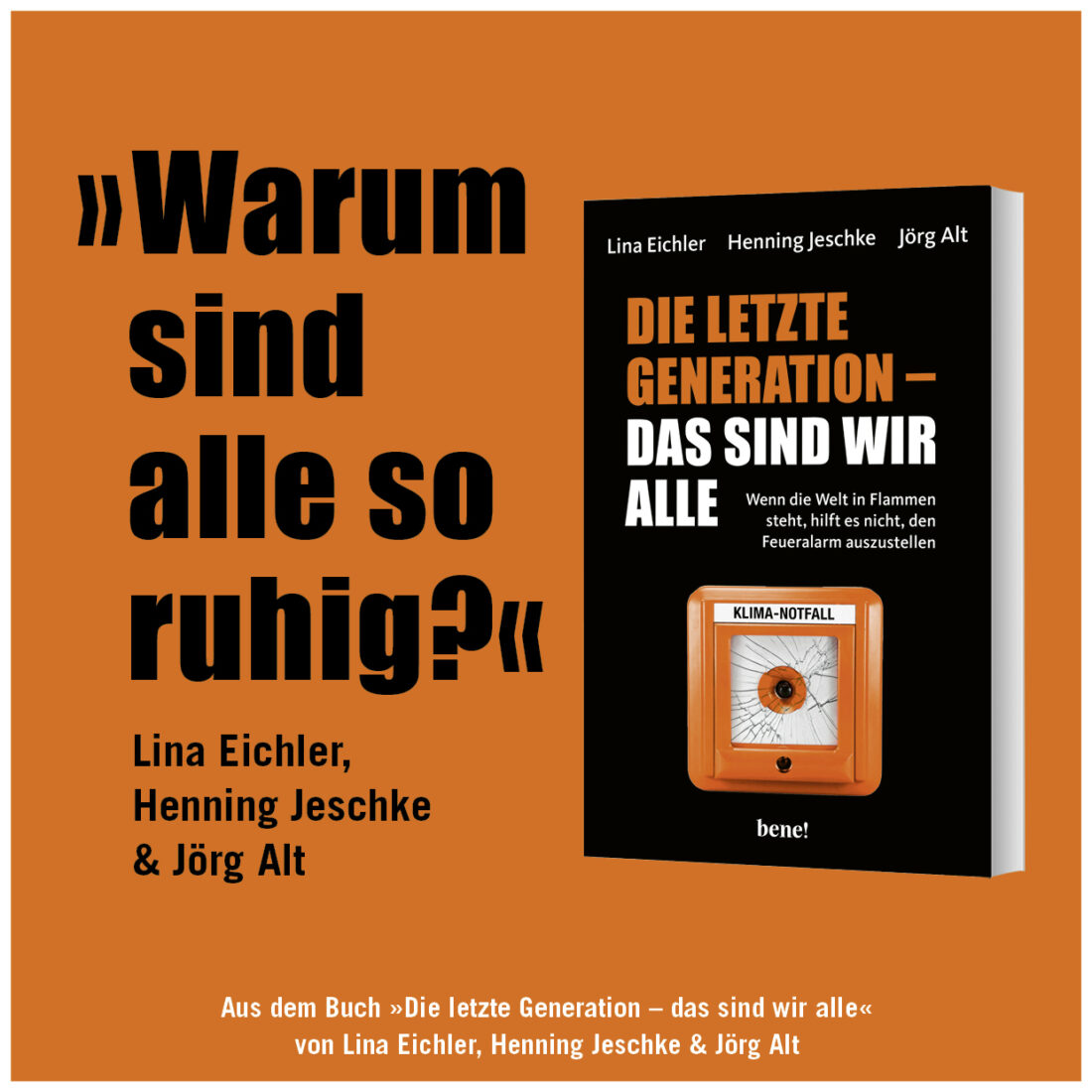 Mein neues Buch ist da. (Ghosts stehen nicht mal bei Prinz Harry auf dem Cover. Aber innendrin. Mit Bild und Nachwort und überhaupt habe ich alles geschrieben.) Ich freue mich. Über die drei Protagonist:innen, Lina Eichler, Henning Jeschke und Jörg Alt. Die mir so vertrauensvoll ihre Geschichten erzählt haben. Über Stefan Wiesner und alle vom bene! Verlag, die Wunder vollbringen können. Und über das Buch natürlich, das heute erschienen ist. Niemand muss sich ankleben. Aber wir alle müssen verstehen, dass es brennt. Wir schreiben, was wir tun müssen. Und was wir tun können. Lina Eichler, Henning Jeschke, Jörg Alt: Die letzte Generation – das sind wir alle. Wenn die Welt in Flammen steht, hilft es nicht, den Feueralarm auszustellen. Das Buch ist im März 2023 im bene!-Verlag erschienen. Es hat 192 Seiten und kostet 18 Euro.
