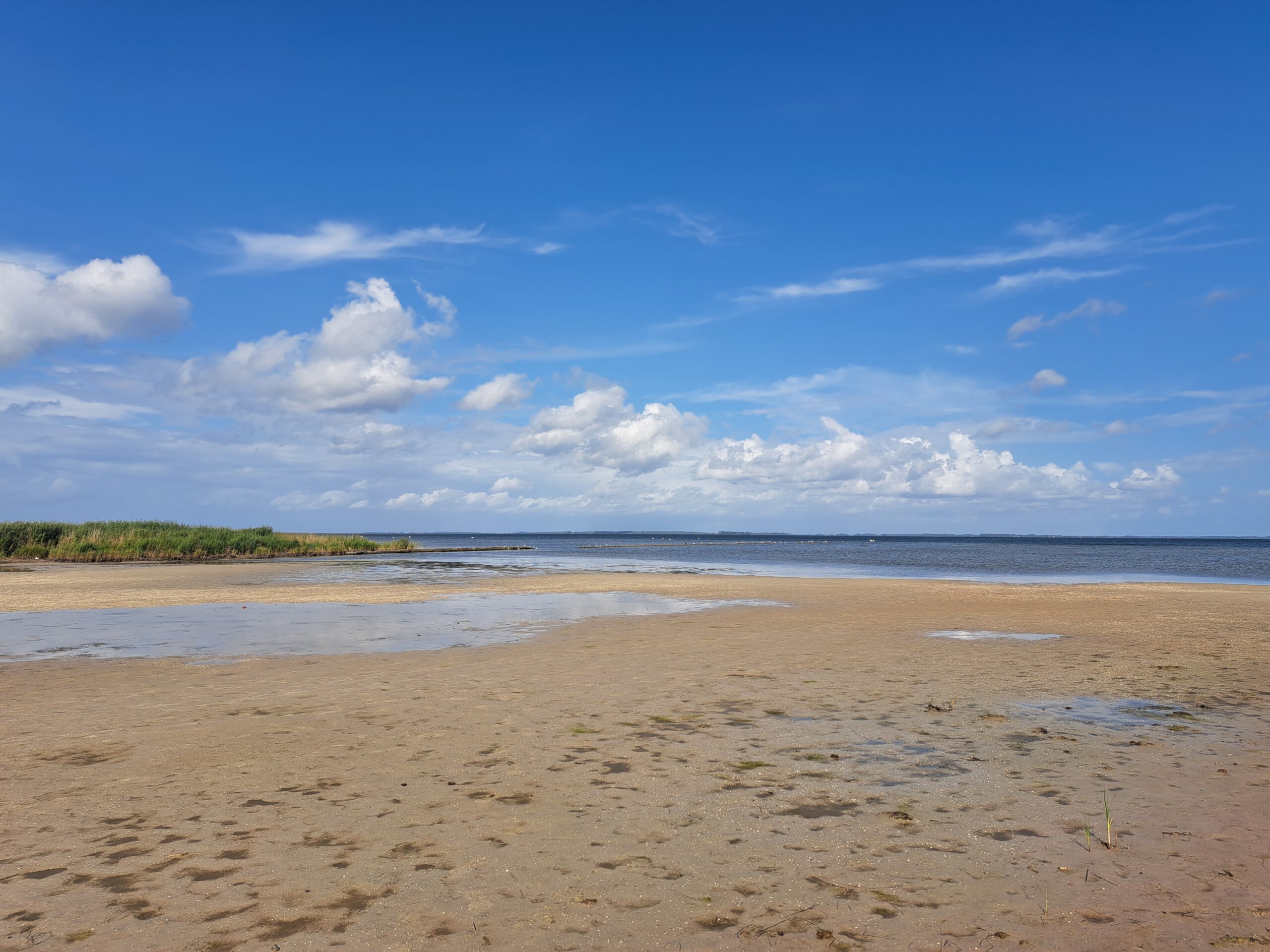 Sommer. Pause. Dieses Jahr unter dem weiten Himmel über der Boddenlandschaft in Vorpommern. Ganz neue Welten für mich. Wind und Wetter und Wildgänse. Das ist toll. Mit den Fahrrädern fahren wir um die größten Nistplätze der Kraniche in Europa. Das ist auch toll. (Nicht ganz so) toll: so viele, so aggressive, so erfinderische Mücken. (Aber, nun, Boddenwasser, Brackwasser, Schlick und Schilf. Wussten wir vorher…)